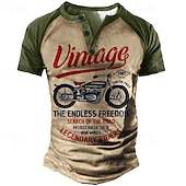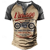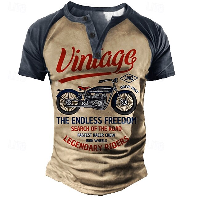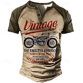 Why Choose Men's T shirt Tee Henley Shirt Tee Graphic Letter Motorcycle Henley Blue Brown Green Khaki 3D Print Plus Size Outdoor Daily Short Sleeve Button-Down Print Clothing Apparel Designer fashionable Vintage?